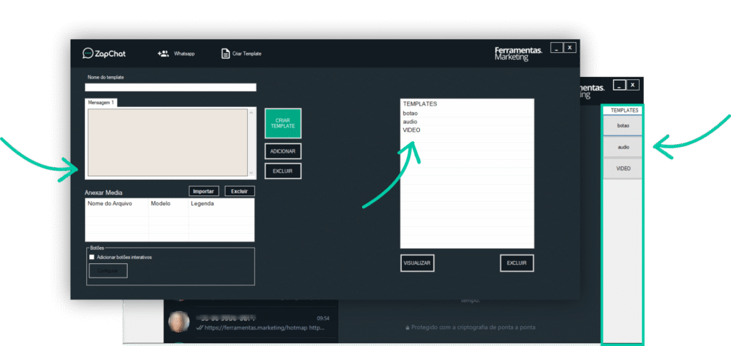 Diferente de um chatbot, é você quem clica nos botões para enviar templates de mensagens.